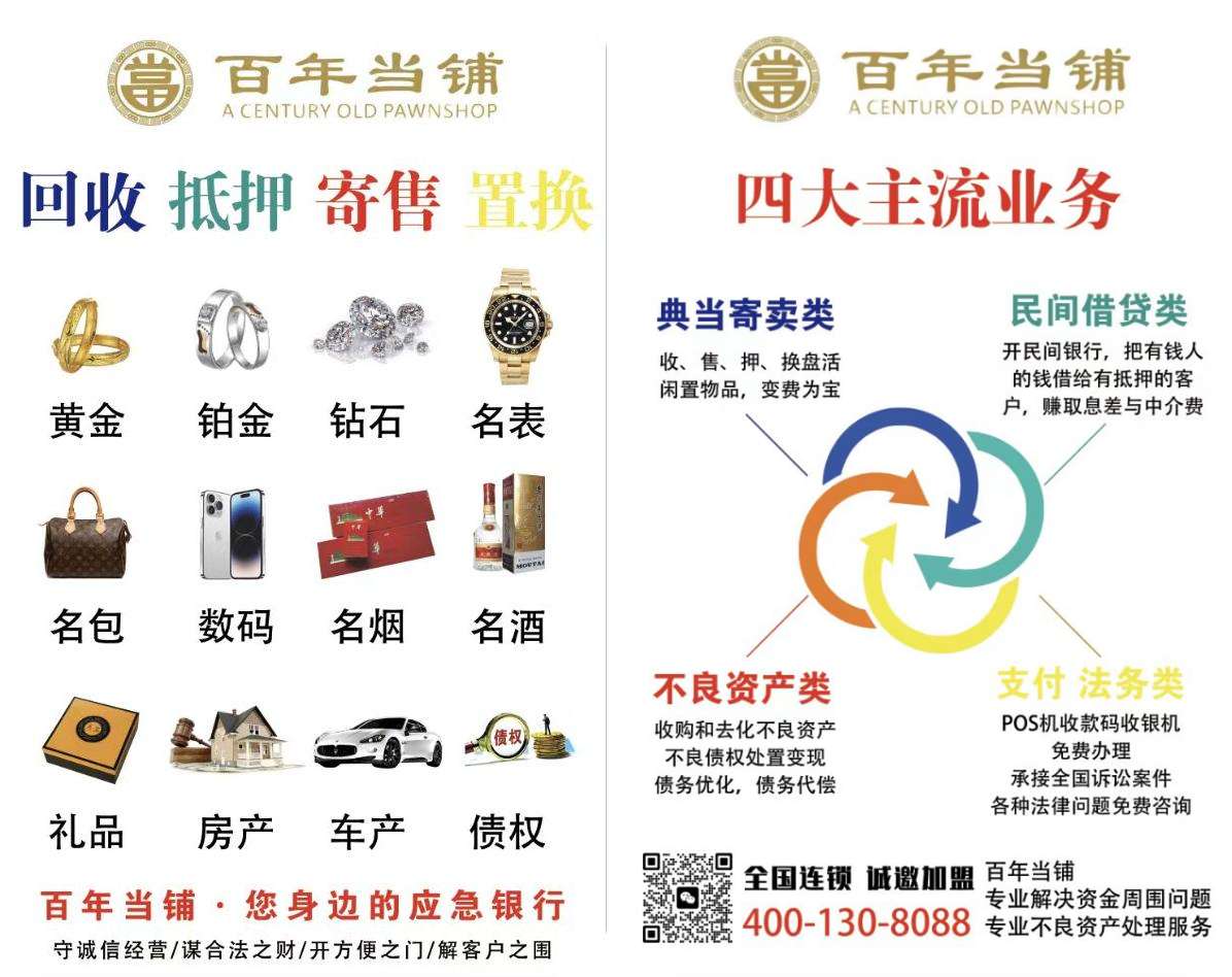 百年当铺专注于:民间资金周转、闲置物品盘活、不良资产处置、法律咨询服务。
